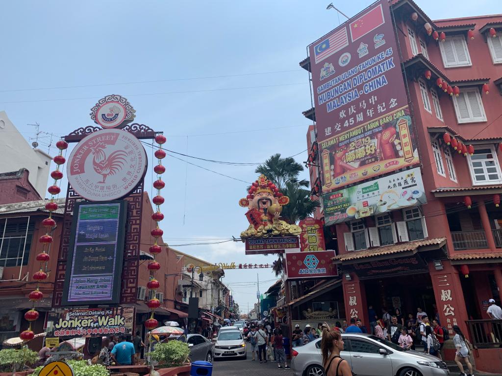 马六甲鸡场街文化坊是一条位于马来西亚马六甲州马六甲市,结集古迹、文化、休闲三体合一的古老街道。这条作为甲市世界文化遗产核心的历史老街自2000年成立,如今已发展为著名的文化旅游景点,2019年正值中马建交45周年之际,在鸡场街的入口也挂着中马建交45周年的纪念牌匾。一入鸡场街便感受到了浓浓的“中国味”,鸡场街原义取自于闽南语“街场街”,因由早在600多年前中国明代著名外交使节郑和七次远洋航海,并且六次驻节马六甲时,在当地设立“官厂”,也让以鸡场街为主干的二十多条周边街巷成为当时华人迁居南洋最早的集中聚居地区。鸡场街除了依然处处可见许多结合中式南洋建筑风格的古楼林立,包括百年华人同乡会馆以及寺庙,也在每逢周五至周日,一连三天傍晚起至凌晨经营夜市,摆摊展售各种地道美食、精美艺品、闻名土产等,我们一行人也参观了鸡场街,同时品尝了当地的美食。