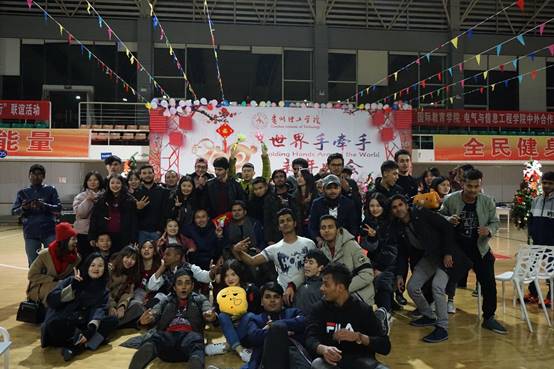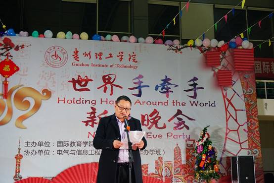 为了促进国际学生更快地融入到本校的学习与生活,增进中国学生与国际学生的交流,12月23日晚,由国际教育学院、电气与信息工程学院中外合作办学班联合举办的“世界手牵手”新年晚会在体育馆举行。贵州理工学院副院长宋建波、副院长胡兴灿、院长助理李滚及国际教育学院、电气与信息工程学院师生参加了新年晚会。