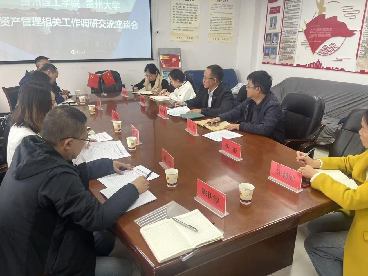 为贯彻落实高校国有资产管理相关要求,深化校际间资产管理经验共享与合作共建,2025年11月14日国有资产管理处王婷婷处长带队到贵州大学资产管理处就资产全生命周期管理、信息化建设、采购监管等核心工作开展深度交流研讨。