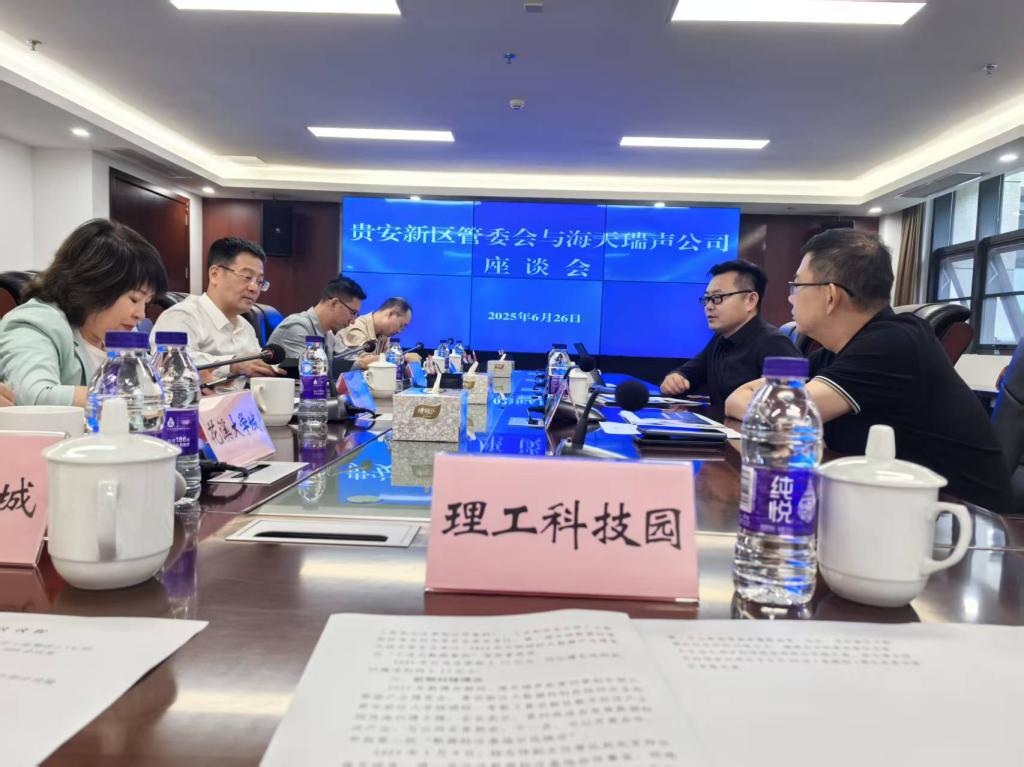 2025年6月26日,一场聚焦深化合作、共谋发展的座谈会在贵安新区市民中心举行。贵安新区管委会与北京海天瑞声科技股份有限公司(以下简称“海天瑞声”)代表齐聚一堂,深入探讨合作机遇与项目落地路径。科技园特邀前往贵安新区市民中心,参与此次重要座谈会。座谈会由贵安新区领导毛胤强同志主持。