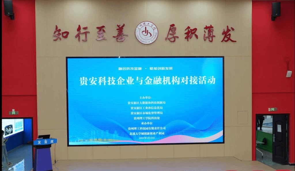 为加速“科技+金融”深度融合,激活创新链与资金链协同效能,2025年5月16日下午,由贵安新区大数据科创局、工业和信息化局、市场监管局、贵州理工学院科技处及贵州理工学院大学科技园联合主办的“融合科技金融-赋能创新发展”贵安科技企业与金融机构对接活动在贵州理工学院科技孵化园举行。