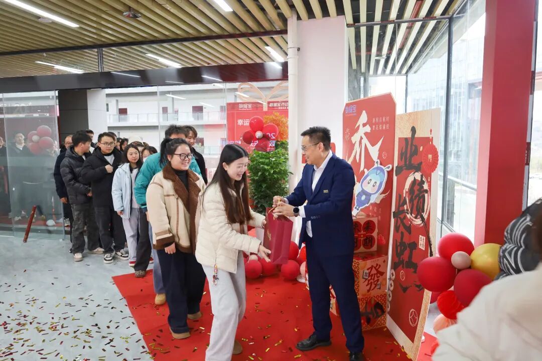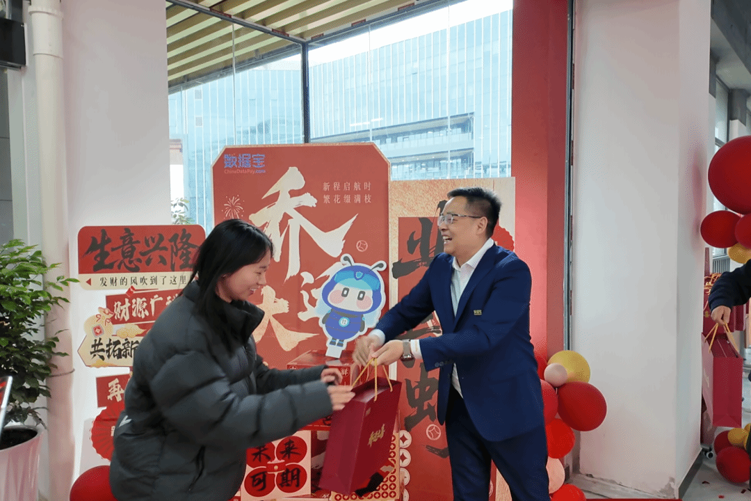 乔迁之后首日(12月23日)上班开工,数据宝在崭新敞亮的三楼前厅举行了隆重的开工仪式。贵州总部全体成员满怀对新征程的期待,排队领取公司精心准备的开工礼。一份份满载祝福的礼物,传递着公司对每位伙伴的感谢与关怀,也凝聚着团队在新起点上同心前行、共赴未来的坚定决心。仪式在笑语与期盼中圆满礼成,标志着数据宝在全新空间里的正式运营全面启动。