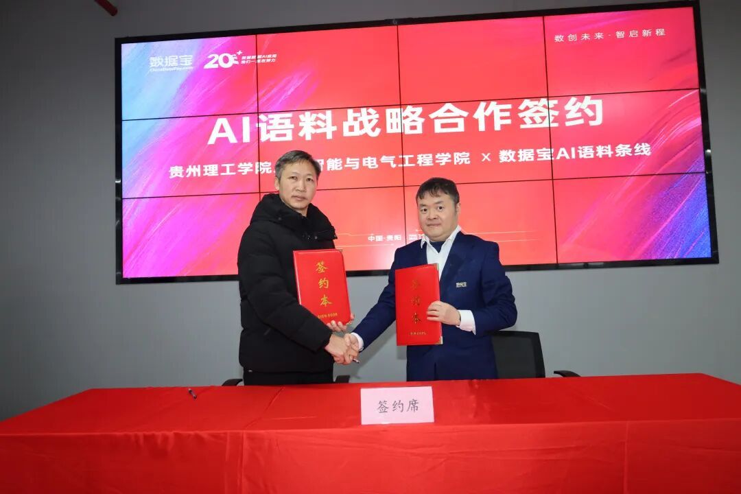 AI语料战略合作签约:数据宝董事彭海林与贵州理工学院人工智能与电气工程学院院长龙飞签署AI语料战略合作协议。双方将依托数据宝的海量数据治理能力与学院的AI技术优势,共同构建高质量、多模态的AI训练语料库,为人工智能产业发展提供坚实“数据燃料”。