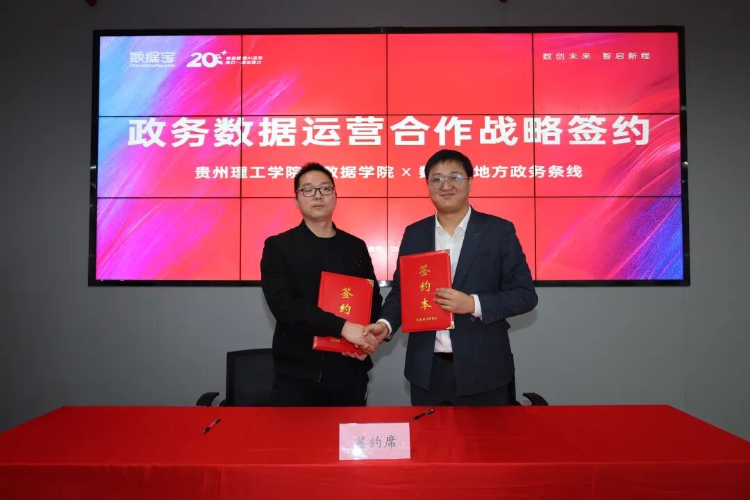 政务数据运营战略合作签约:数据宝合伙人孙腾与贵州理工学院大数据学院院长王喜斌签署政务数据运营战略合作协议。将围绕政务数据资源化、资产化、价值化开展联合攻关与场景创新,为提升政府治理效能与公共服务水平提供技术方案与人才支持。