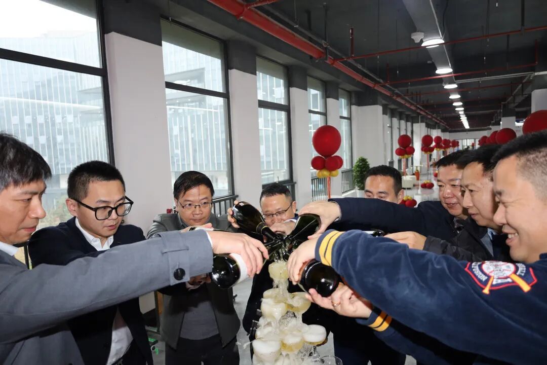 仪式后,在汤寒林董事长的亲自陪同与讲解下,与会贵宾一同参观了办公空间。汤寒林董事长如数家珍般地介绍了各功能区域的设计理念与实用功能,从体现开放协作的现代办公区,到融合企业文化与战略思考的命名空间,逐一阐释其背后的寓意与期待。各位贵宾跟随他的脚步,实地感受了空间布局、氛围与细节。