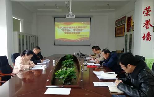 2019年12月12日,化学工程学院党总支在主楼901会议室召开2019年度“不忘初心、牢记使命”专题民主生活会。会议由党总支副书记宋明江通知主持,学校第一巡回指导组组长林长松同志、组员苏姝同志出席本次民主生活会。