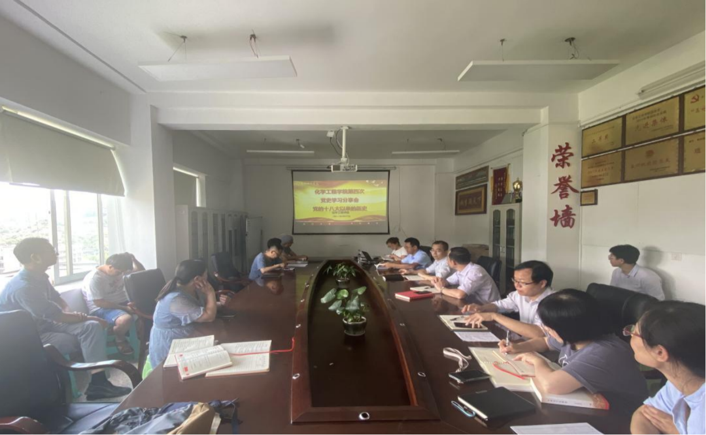 6月18日下午,化学工程学院教师党支部组织全体教师党员在行政楼901开展党史学习教育第四期读书分享会,会议围绕“中国共产党十八大以来的历史”展开学习和交流。