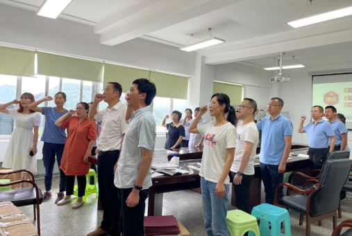 首先,学院党总支书记宋明江带领全体教师党员重温入党誓词。入党誓词是行动指南,是中国共产党人的座右铭,再次接受入党誓词的洗礼,不仅进一步坚定理想信念,在之后的工作、生活中也能时刻以实际行动去恪守对党的承诺、立足本职、争当先锋。