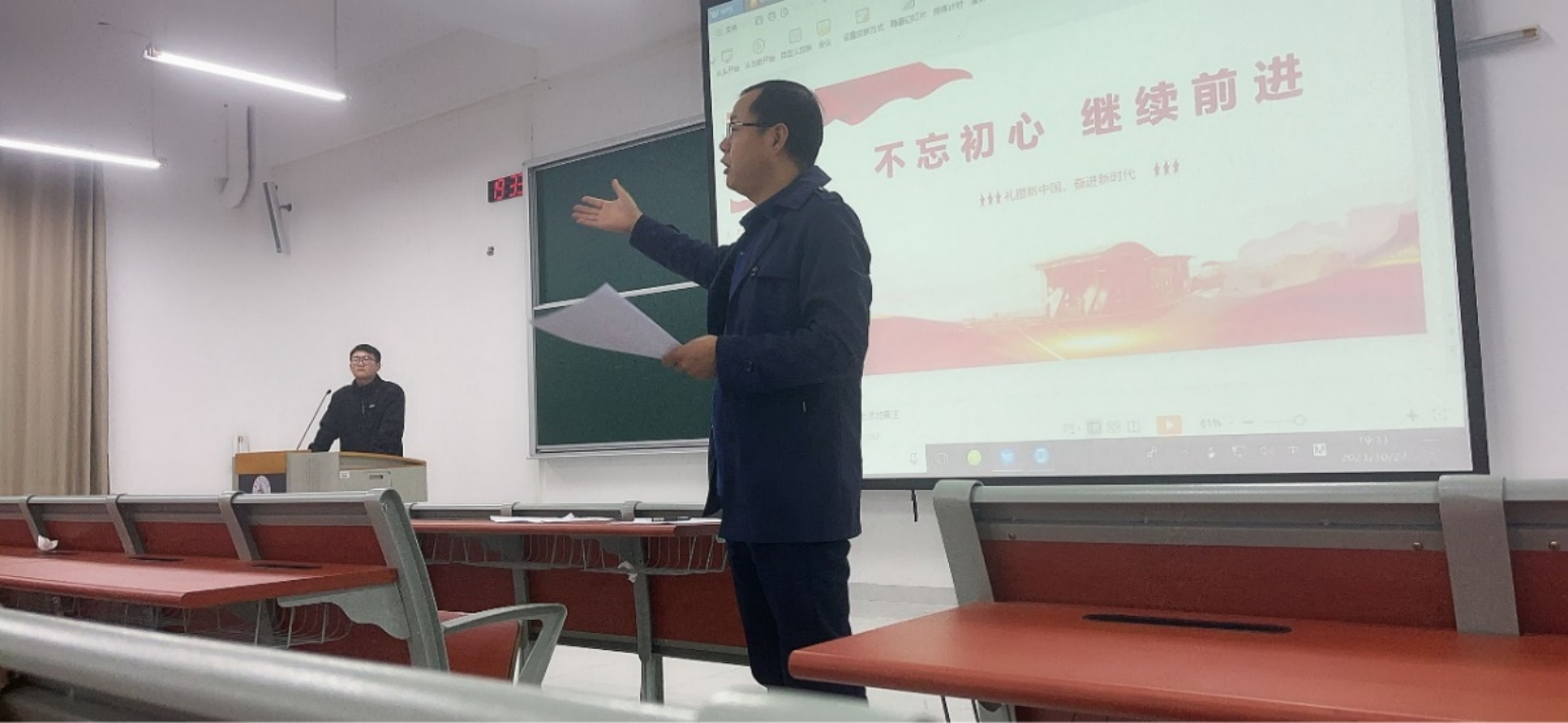 本期初心讲堂以“礼赞新中国、奋进新时代”为主题,10月27日晚,学院党总支副书记蔡诚以及学生党支部党员、党员发展对象和入党积极分子在酝知楼126教室共同参与学习。会议中,由张田、扶广、陈帅宇、王微、毕京鑫五位同学分别以 “否定之否定” “红船精神” “青年奋进正当时” “习近平新时代中国特色社会主义思想概论”为题进行分享。