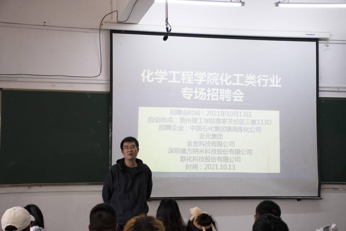 为促进毕业生就业,指导其全面做好就业规划,做好就业准备,把握就业机会,2021年10月13日,化学工程学院举办行业专场招聘会暨2022届毕业生就业推进会,企业代表、毕业班辅导员、班主任与2022届全体未就业同学参加了会议。