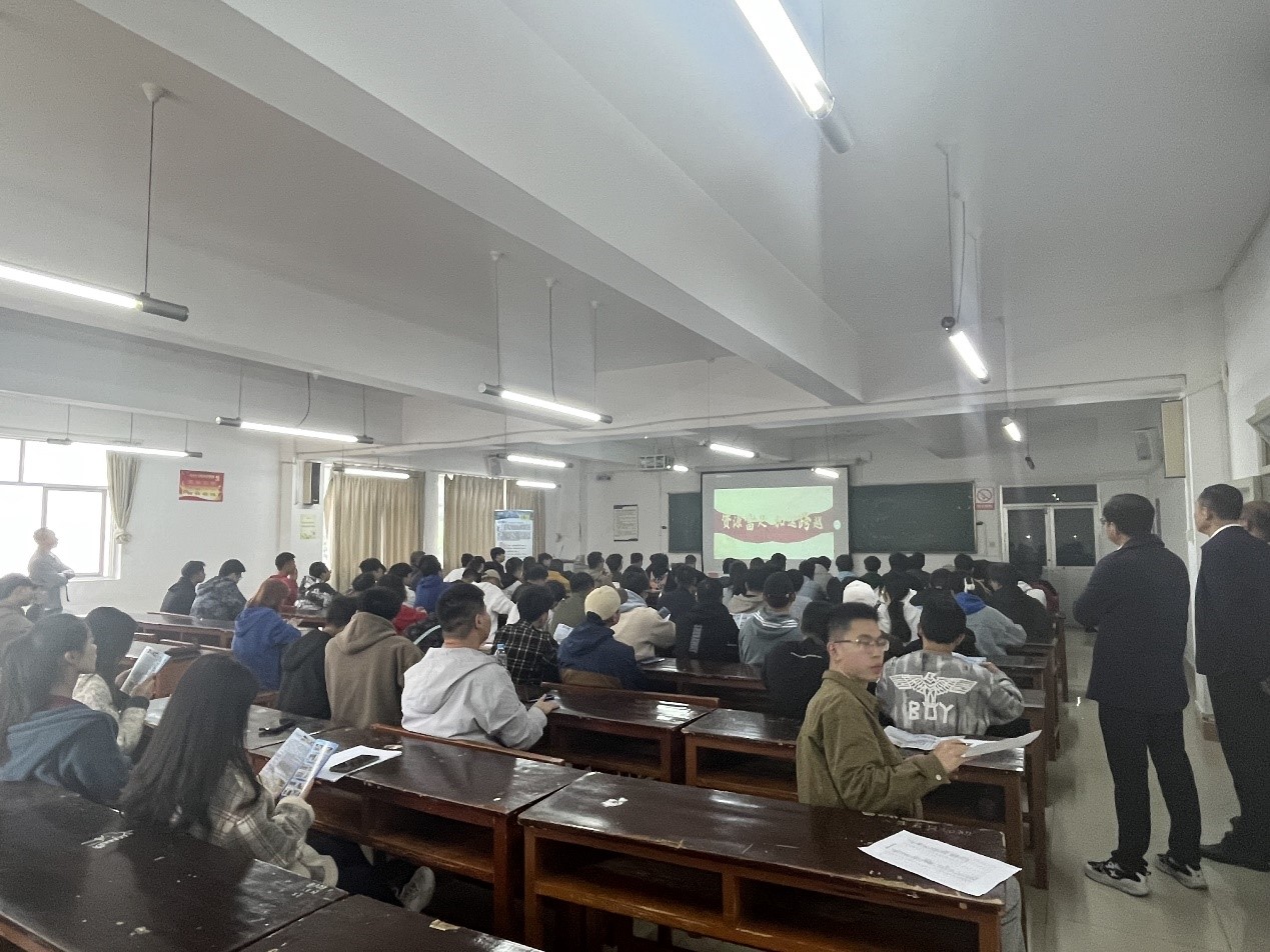 由贵阳市开阳县人力资源和社会保障局组织联系,2023年5月9日上午10点在3教314教室,开阳人社局赵乐根局长带领贵州胜威凯洋化工有限公司、贵州安达科技能源股份有限公司、贵州中伟兴阳储能科技有限公司、贵州邦盛新能源材料有限责任公司四家企业来到化学工程学院进行专场招聘会宣讲。