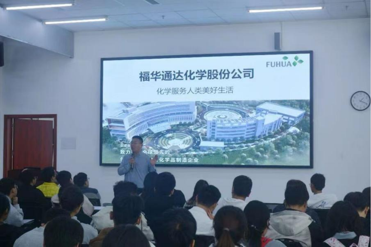 2024年10月10日下午,福华通达化学股份公司来我校进行招聘。此次招聘会,福华通达化学股份公司带来了多个职位,涵盖研发工程师、工艺设计师、市场营销专员等多个领域,涉及化学工程、材料科学、市场营销等多元学科背景。