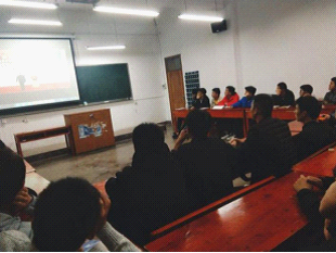 11月12号晚,全体同学在自习室1-209室观看了《改革开放四十年》、《创新中国》等影视片,并在团支书朱福生的带领下宣读“亮剑精神”——面对强大的对手,明知不敌,也要毅然亮剑,即使倒下,也要成为一座山,一道岭。随后,同学们纷纷发表自己的感想,一致认为我们必须不断学习新思想,自我创新,自我成才,才能不负嘱托,感恩奋进,为祖国的建设添砖加瓦。