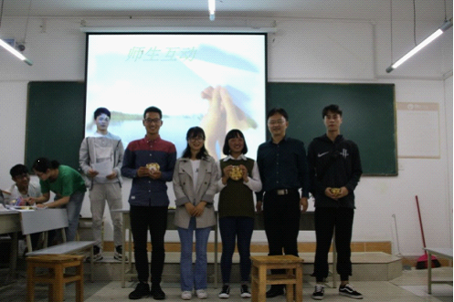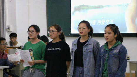 在同学们齐声高唱之后,迎来了有趣的“你写我猜”游戏,同学们积极参与与老师、学长们默契配合。猜词者百思求解,表演者激情演绎、手舞足蹈,期间掌声,欢呼和欢笑声不断。在猜到最后一词时,同学们共同喊出所猜词语“老师您辛苦了”送给老师们,以表自己的感激之情。几轮竞赛之后为前三名颁奖,最后一名抽惩罚。
