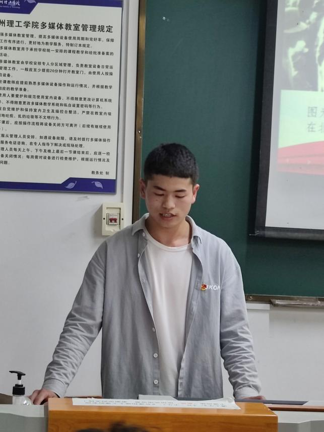 为深入贯彻落实习近平总书记在党史学习教育动员大会上的讲话精神,扎实推进党史学习教育,4月27日晚,贵州理工学院党史宣讲团成员、化学工程学院杨辉同学走进土木工程学院,带领土木202、土木203全体同学在3-103教室一起回顾青年反侵略战争历程,学习和传承红色精神。