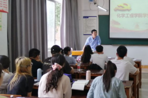 学习党史,不忘初心,砥砺奋进,5月7日,化学工程学院刘新铭老师在3教103教室对化学工程学院化工181、化工182班的同学开展党史学习教育主题宣讲活动。