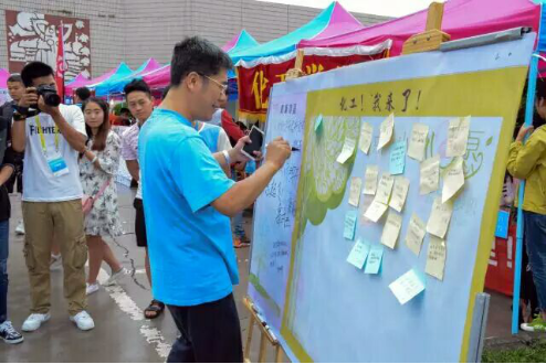 突如其来的大雨,没有浇灭新同学们报道的热情,迎新工作仍然顺利进行。负责迎新的学长学姐不厌其烦的为学弟学妹们办理手续,带路,学弟学妹们带着青春的热情,对大学生活的期待,在留言墙上写下对自己的青春寄语,老师们也为大家写下了祝福语。