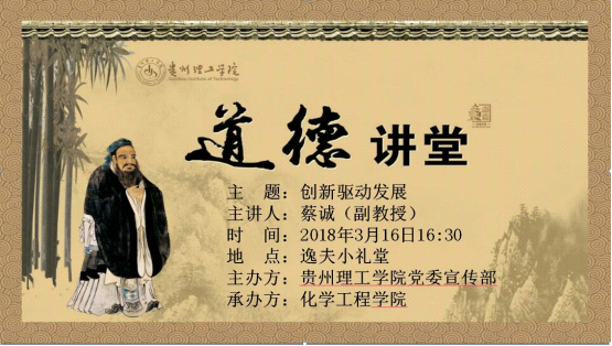 为帮助学生深入了解十九大,增强创新意识,做新时代新青年,3月16日下午,2017年度校优秀教育工作者、我院学生科科长蔡诚副教授走进道德讲堂,在逸夫小礼堂为大家带来“创新驱动发展”讲座。