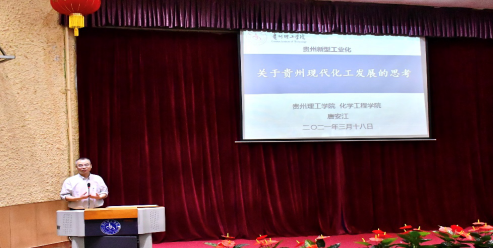 唐安江教授从贵州化工产业发展的现状、现代化工的特征和实现路径、存在问题等方面进行阐述。
