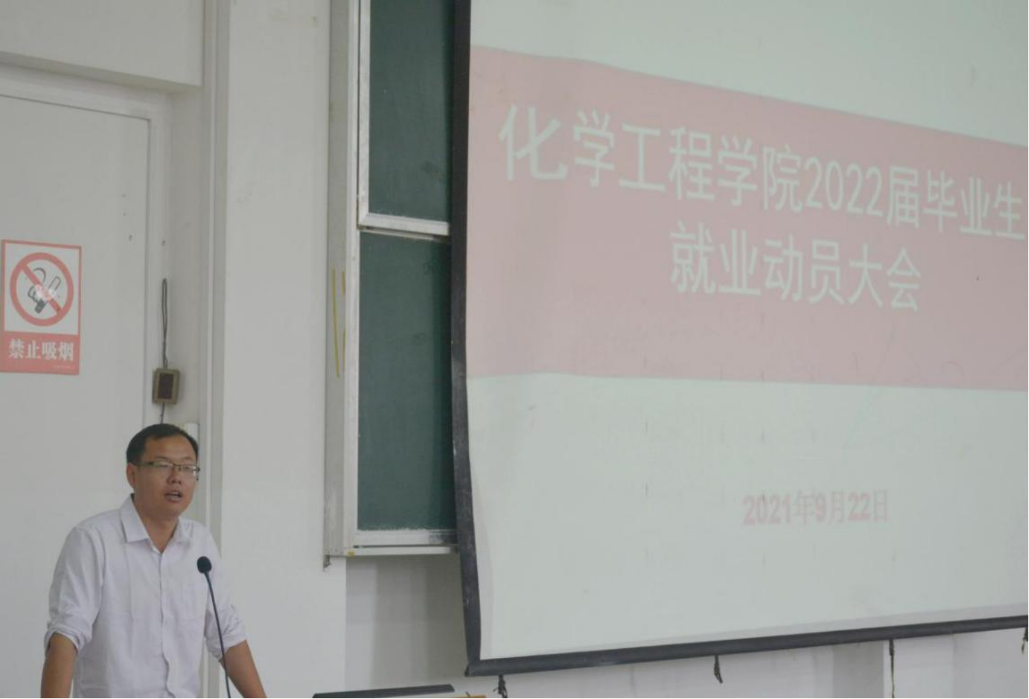 为促进毕业生就业,指导其全面做好就业规划,做好就业准备,把握就业机会,9月22日下午,化学工程学院2022届毕业生就业动员大会在3-413教室召开。大会由学院党总支副书记蔡诚主持,院长唐安江、2018级辅导员、班主任与全体学生参加了会议。