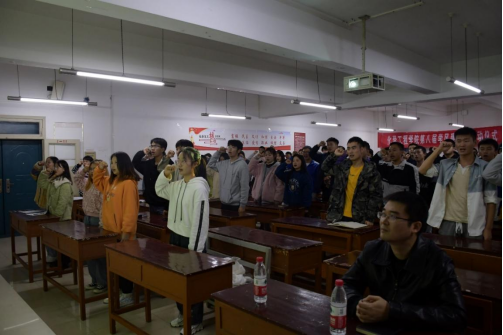 最后由学生代表带领全体同学为此次学风建设月活动进行了宣誓:树立正确的学习态度,养成良好的学习习惯;上课不迟到、不早退、不旷课;严格遵守学院的各项规章制度;不做违反校纪校规的事情。做到自尊、自爱、诚信、友善;积极带动身边的同学参与到学风建设月活动中来。