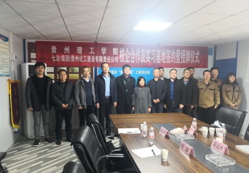 会上,陈丽琪介绍了贵州化工建设有限责任公司福泉分公司的现状,莫立坡、唐安江分别就贵州理工学院及化学工程学院的基本情况进行了介绍。针对生产中存在的具体问题,化建所属部门负责人提出相关需求,并与教师们进行技术探讨和交流,在科研、成果转化及人才培养等方面达成共识。最终,双方签订了校企合作协议及实习基地建设协议,并举行了的签约及授牌仪式。