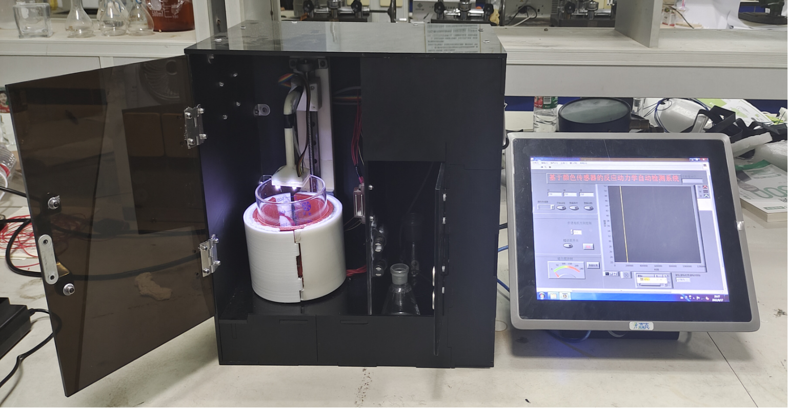 《基于颜色传感器的反应动力学自动化测定仪》项目组由武小涵(2020级,化学工程与工艺专业)、陈朗(2019级,过程装备与控制工程专业)、潘俊(2020级,化学工程与工艺专业)及周冉(2019级,过程装备与控制工程专业)四位同学组成,充分发挥了跨专业交叉的钻研精神和团队协作创新精神,经过文献查阅、项目前景分析、仪器外观设计、单片机程序开发、PCB电路板设计及上位机程序开发等过程,历时10个月,对滴定分析法中传统人眼判断滴定终点的实验方式进行了改进创新,设计研发了基于TCS3200颜色传感器测定过氧化氢与碘化钾反应速率常数的自动化仪器,且应用结果显示该仪器测定过程准确高效,测定时间节约至少60 min。