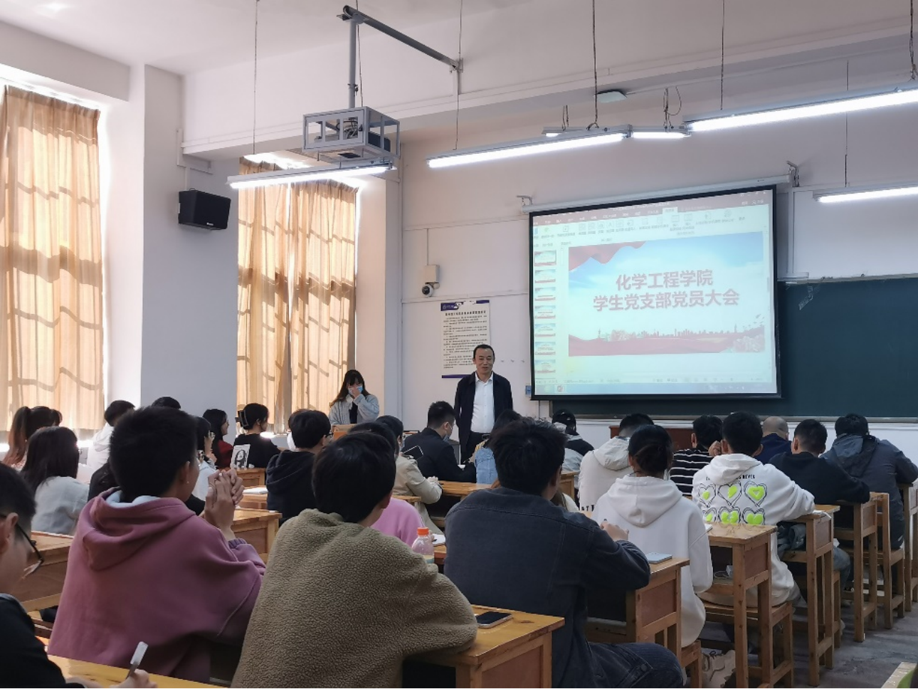 首先,化学工程学院党总支书记宋明江提出,让学生党员充分发挥先锋模范带头作用,提出“将支部建在班级上、课堂上、寝室中”,强调同学们要在维护安全稳定上担当作为,在政治安全、经济安全和生命安全上做楷模,同时要在思想、生活中严格要求自己,要在学习、升学、就业上做标兵。