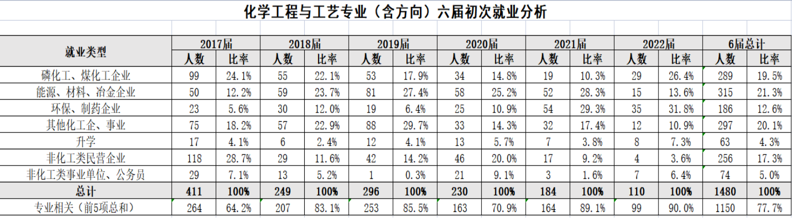 历届毕业生就业追踪调查情况如下:1.毕业生去向落实率情况。学院通过采用电话、问卷调查和系统分析显示,我院历届毕业生去向落实率均超过93%;家庭经济困难学生均升学或就业,去向落实率100%;2.毕业生平均薪酬情况。通过跟踪调查得出数据显示,我院化学工程与工艺专业毕业生平均薪酬约5900元/月;3.毕业生专业相关度。如化学工程与工艺专业毕业生初次就业所从事的工作和专业相关度达到78%,并且呈现逐年上升趋势,最近一届达到了90%;4.从毕业生就业区域统计分析,历届毕业生选择留在贵州省内工作占比53%,与此同时,华东和华南地区也是毕业生就业会较多选择的区域;用人单位对毕业生工作满意度情况。通过联系来校招聘企业,采用问卷调查的方式收集了用人单位对我院毕业生的满意度,调查显示,90%用人单位对我院化学工程与工艺专业毕业生满意或者比较满意,99%对我院毕业生就业推进工作满意或者比较满意。