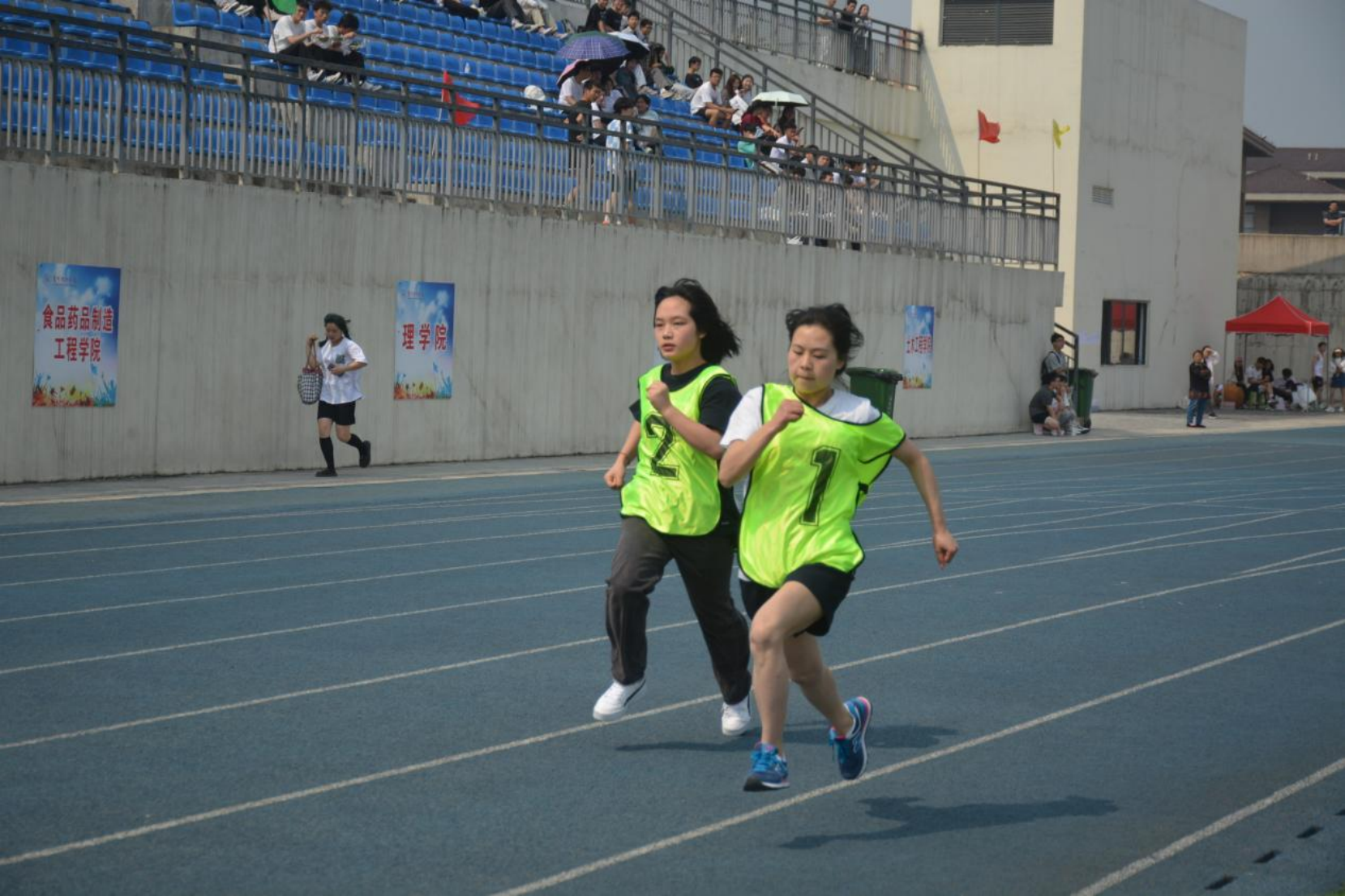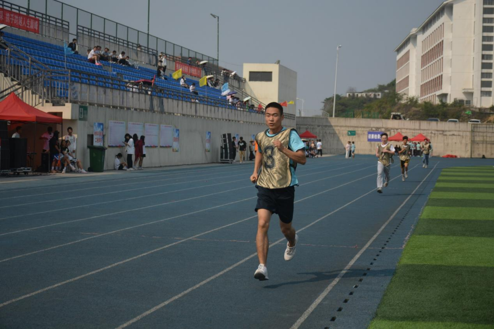 代表化学工程学院的68位参赛的运动健儿,摩拳擦掌,精神抖擞,随着一声声哨响,活跃在赛场的每个角落——跳高、跳远、铅球、长跑……,任凭汗水洒赛场,拼尽全力战胜对手!