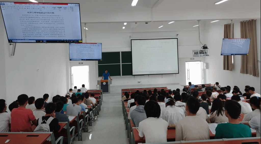 为帮助2024届毕业生做好就业准备、把握就业机会,实现充分高质量就业,2023年9月18日,化学工程学院2024届毕业生就业动员大会在C03-118、119阶梯教室召开。会议由2020级辅导员吴承燕主持,学院党总支书记宋明江、副院长黄宏升、党总支副书记蔡诚、学生科副科长刘新铭、2020级班主任及2020级全体同学参加了会议。