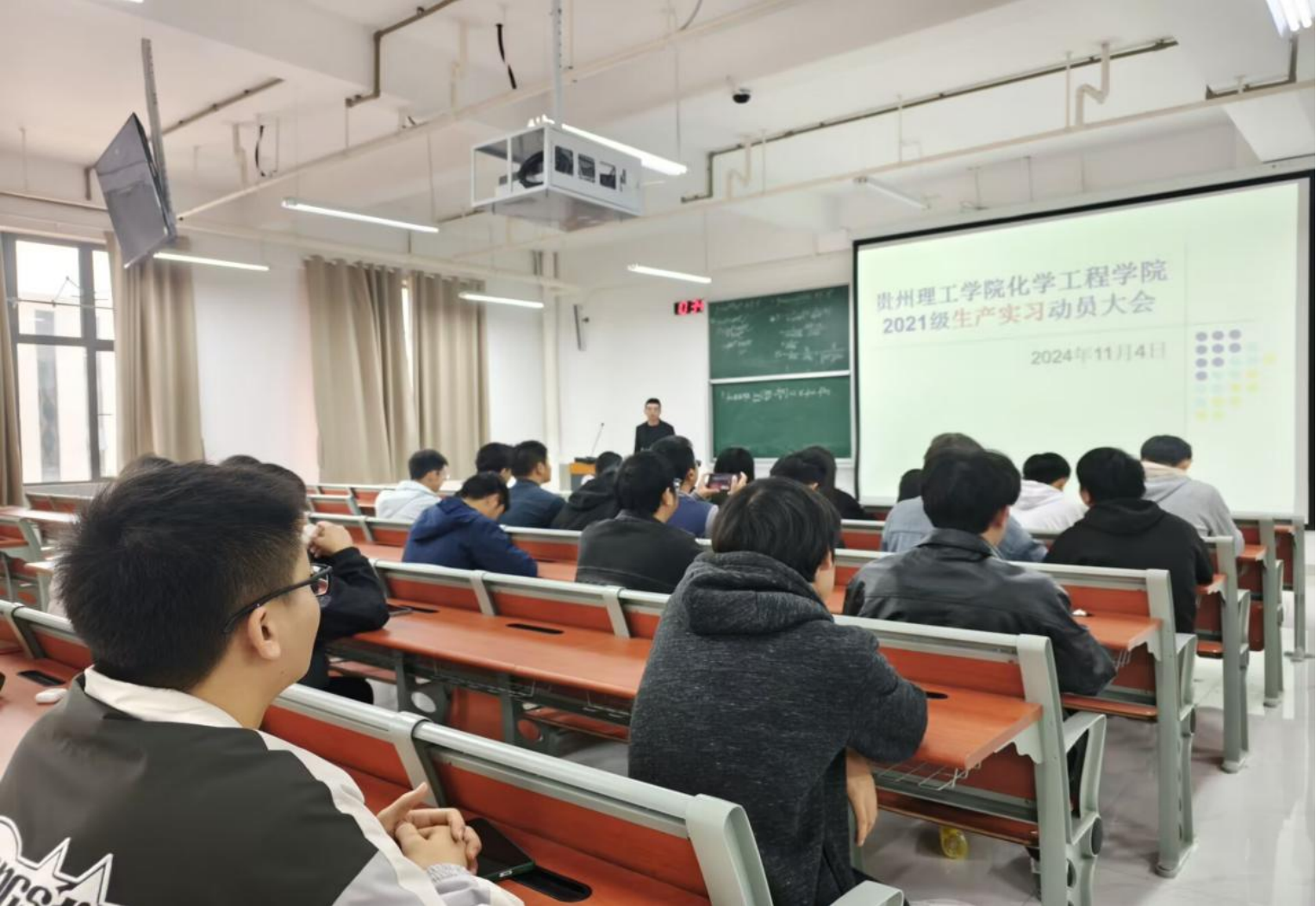 为全面推动2024年学生实习实训工作顺利开展,切实提高学生专业专注度和就业竞争力,化学工程学院过程装备与控制工程专业教研室于2024年11月4日在酝知楼241教室召开生产实习动员大会。过程装备与控制工程专业负责人吴其俊教授,教研室主任郭俊江副教授,全体2021级过程装备与控制工程专业学生参加动员大会。