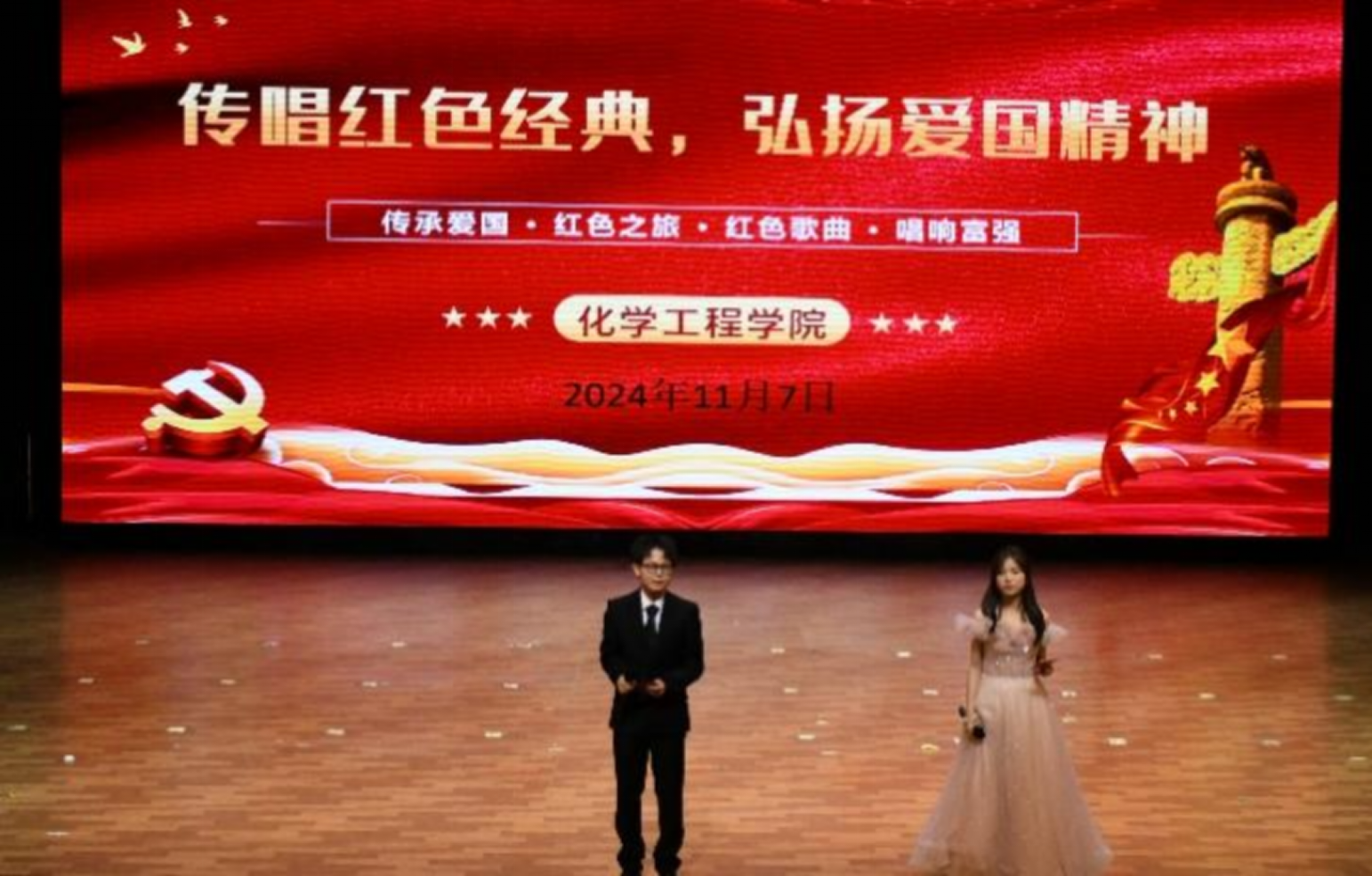 2024年11月7日下午,化学工程学院在贵州理工学院蕴华楼大礼堂隆重举行了“传唱红色经典,弘扬爱国精神”合唱比赛。化学工程学院的2024级各班同学齐聚一堂,用歌声传递爱国情怀,以实际行动践行社会主义核心价值观。学院党总支书记宋明江、院长黄宏升、党总支副书记蔡诚,2024级辅导员、班主任出席。