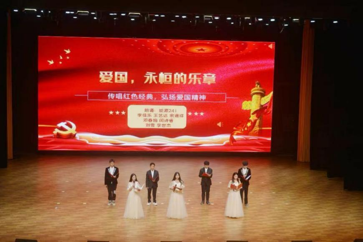 此外,化工241熊恒同学独唱《我的中国心》,观众们被深深打动,报以热烈的掌声与欢呼声;罗孜老师精彩陶笛演奏《故乡的原风景》,使在场所有人无不拍手叫绝;能源241班李佳乐、王艺达等同学的深情朗诵《爱国,永恒的乐章》也赢得观众们阵阵掌声。