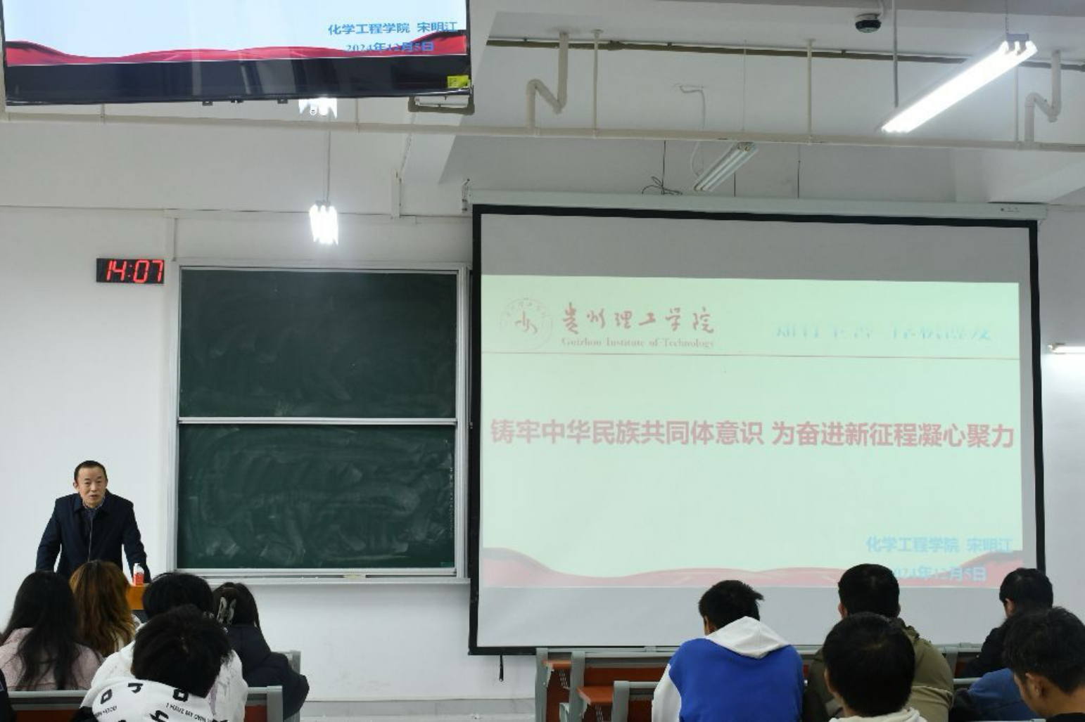 为深入学习贯彻习近平总书记关于加强和改进民族工作的重要思想,加强学生思想政治教育,培育学生的中华民族共同体意识,2024年12月5日下午,化学工程学院在酝知楼241教室开展了以 “铸牢中华民族共同体意识,为奋进新征程凝心聚力” 为主题的第三十期明心讲堂活动,主讲人是化学工程学院党总支书记宋明江。