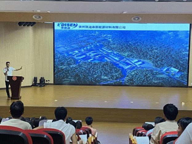 贵州凯迪森新能源材料有限公司代表详细展示了企业风貌以及公司的发展状况,在“双碳”战略背景下,新能源行业迎来机遇,行业前景广阔,同时也为同学们详细介绍了个人职业发展空间。