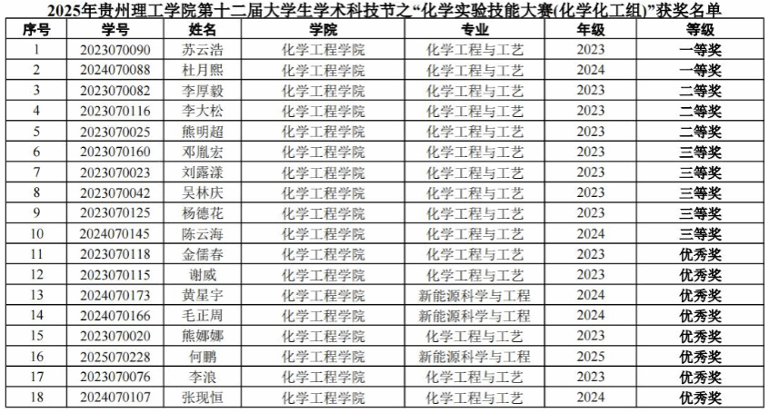 2025年12月6日,贵州理工学院第十二届化学技能大赛总决赛在酝知楼344、345实验室顺利进行。本次化学实验技能大赛由贵州理工学院团委、创新创业中心和化学工程学院主办,化学工程学院团总支学生会、贵州理工学院学生化工设计社团、贵州理工学院化工动力与控制协会共同承办。本次比赛以“理论+实操”的方式,吸引了来自全校化学爱好者的报名参与。