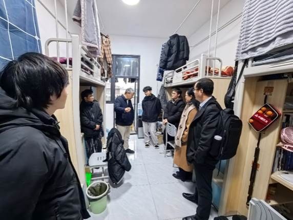 班会结束后,任洲麒前往学生宿舍区,实地走访化工学子宿舍。在走访过程中,他与同学们面对面亲切交流,细致询问大家的日常生活状况、饮食起居、学习进度等,叮嘱同学们要注意冬季保暖、用电安全,合理安排作息时间,保持良好的学习状态。温馨的交流氛围让同学们倍感温暖,进一步拉近了校领导与同学们的距离。