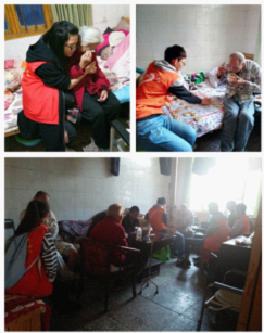 化工青协志愿者们先去为老人们采购生活用品及水果点心,到达敬老院后,志愿者们分工明确,有的和老人交流谈心,有的帮老人穿衣、按摩,有的陪老人下象棋、看电视,还有的负责和面包饺子。午饭时间志愿者们为老人们煮水饺,老人们对志愿者的手艺赞不绝口。整个过程,老人们感受到了我们大学生志愿者们对他们的浓浓关怀。