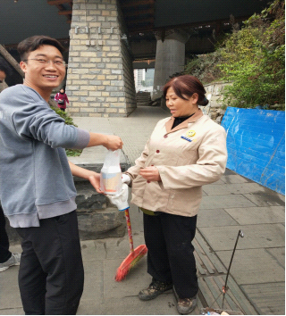 雷锋曾经说过:“世界上最光荣的事----劳动,世界上最体面的人----劳动者。” 然而,体面的劳动者往往默默地平凡着。虽然空气中弥漫着微微凉意,但同学们仍怀揣着炙热的心,向光荣的劳动者们送去了我们真诚的爱心,以及长久以来想要表达的谢意。同学们带着爱心商铺“蜜雪冰城”赠送的热饮走向了我们可爱的公交师傅,环卫阿姨,以及可敬的警察同志,向他们递上了代表我们深切关心的一杯热饮。