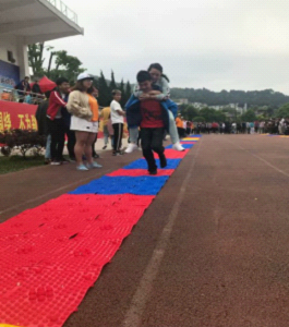 在趾压板背人接力比赛中,我院获得第七名。同学背着队友咬牙坚持往前冲。在他们眼中,脚下的并不只是简单的趾压板,而更像是生活中的困难、挫折。 他们勇往直前的精神更是来源于对生活的不服输的那股劲儿。加油,化工的学子们,你们必定是生活中的佼佼者。