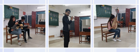秋风渐凉,同学们的心却是暖的,大家为老师们送上了自己的暖意,一只憨态可掬的熊本熊,一支康乃馨,一份老师与同学共同录制的视频,并以一首《感恩的心》将教室的温度急剧上升。同学们又将自己的心意化作一个个节目,如:吉他伴奏歌唱,笛子与琵琶的独奏,让老师们的心中再次一暖。