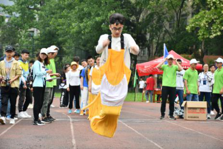 上午进行的是趣味运动比赛。袋鼠跳项目我院有10位运动员组队,拉紧布袋,远远跳出去,稳稳降落,他们有节奏的完成了个人的袋鼠跳,最终获得了第一名;毛毛虫竞速项目,姜顺武、刘邦青、廖毓璇、张奥4位运动员步调一致,骑着毛毛虫快速奔向前方,让毛毛虫飞奔起来,这只化工毛毛虫赶超第三,赶超第二,最终获得第二名的好成绩。同时在疯狂投篮项目中我们也获得了第二名的好成绩。