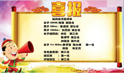 与此同时女子组跳远我院的三朵金花余红,张德琴,帅梳航分别获得了第二,第三,第六名。