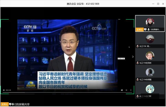 活动开始前,同学们都非常积极的提前加入腾讯会议,准备就绪后由主持人王静主持本次班会,并通过屏幕共享向同学们播放了习近平总书记的寄语视频。