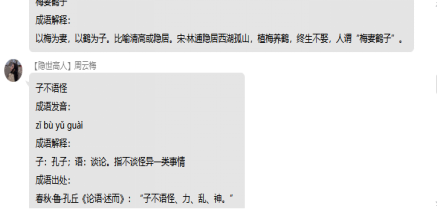 接着在进行了有趣的猜灯谜活动后,六月九日晚上八点半化工194团支部举办了“成语接龙”活动。该活动由胡国容同学组织,在本次活动中刘德育同学为大家分享的来自诗经的高山仰止,有周云梅同学分享的来自刘开的学无止境等。