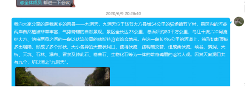 紧接着本次活动于六月七日在腾讯会议由刘德育同学组织,他为同学们分享了他的故乡的旅游文化“曲阜三孔”,包含孔府,孔庙以及孔林,在他介绍之后,同学们纷纷都将自己的家乡的旅游文化在QQ群里发表了出来。