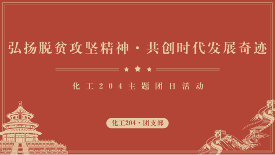 在我国脱贫攻坚战获得全面胜利的历史背景下,化工204全体同学在校团委的号召下于4月8号在天工楼G2204开展了“弘扬脱贫攻坚精神,共创时代发展奇迹”为主题的团日系列活动。