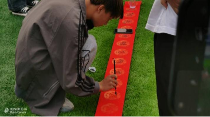 “少年强则国强”,红色精神的引领下,同学们一一进行签字,以表同学们要在青春努力奋斗,将来报效国家的决心。