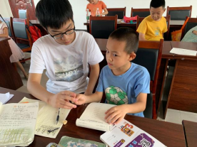 武小涵在河坝村“希望家园”暑期托管班为留守儿童指导作业,与留守儿童携手共成长,帮助解决留守儿童无人看管等问题,卸下在外务工父母的心头牵挂。